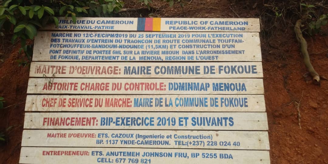 Le vendredi 01 Avril 2022, une commission constituée du Maire de Fokoué et de son équipe, du DDMINMAP, du DDMINTP, du conducteur des travaux des ETS ANUTEMET Johnson Fru et du chef du village Bandoum, a effectué une descente sur cet axe question de s’assurer que l’entreprise adjudicataire avait effectivement réalisé les travaux tel que prévu. Ces travaux inscrits dans le BIP 2019 avaient connu des difficultés lors de leur exécution du fait des conditions géographiques très défavorables, aujourd’hui donc , grâce à la disponibilité , à l’engagement et à l’esprit d’écoute de Mme le Maire de Fokoué qui n’avait cessé d’effectuer des descentes sur ce tronçon pour contrôler l’état d’avancement desdits travaux et trouver des voies et moyens pour pallier aux différents obstacles qui freinaient considérablement l’évolution de cette route.