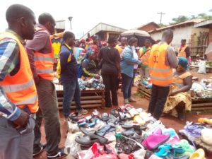 Chemin faisant, l’infatigable Maire de Fokoué a fait le tour du marché question de sensibiliser les commerçants sur le bien fondé de l’hygiène et la salubrité :<< aidez nous à développer notre commune>>, et toucher du doigt les difficultés et les préoccupations des commerçants.