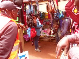 Au cours de cette descente sur le terrain, les installations anarchiques des commençants ont été déguerpies. Rappelés à l’ordre sans succès par plusieurs fois par le chef service d’hygiène et salubrité MIAFFO Clovis, Mme DEMENOU TAPAMO Adrienne et son équipe se sont trouvés dans l’obligation de passer à l’offensive face à cet incivisme de certains commerçants. C’est donc avec calme, douceur et diplomatie qu’ils ont su contourner cet incivisme en les deguerpissant des endroits mal occupés pour des comptoirs restés vides depuis leur construction.