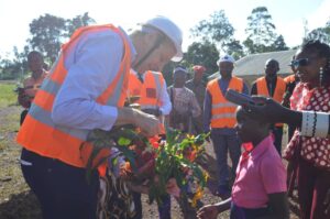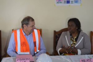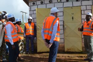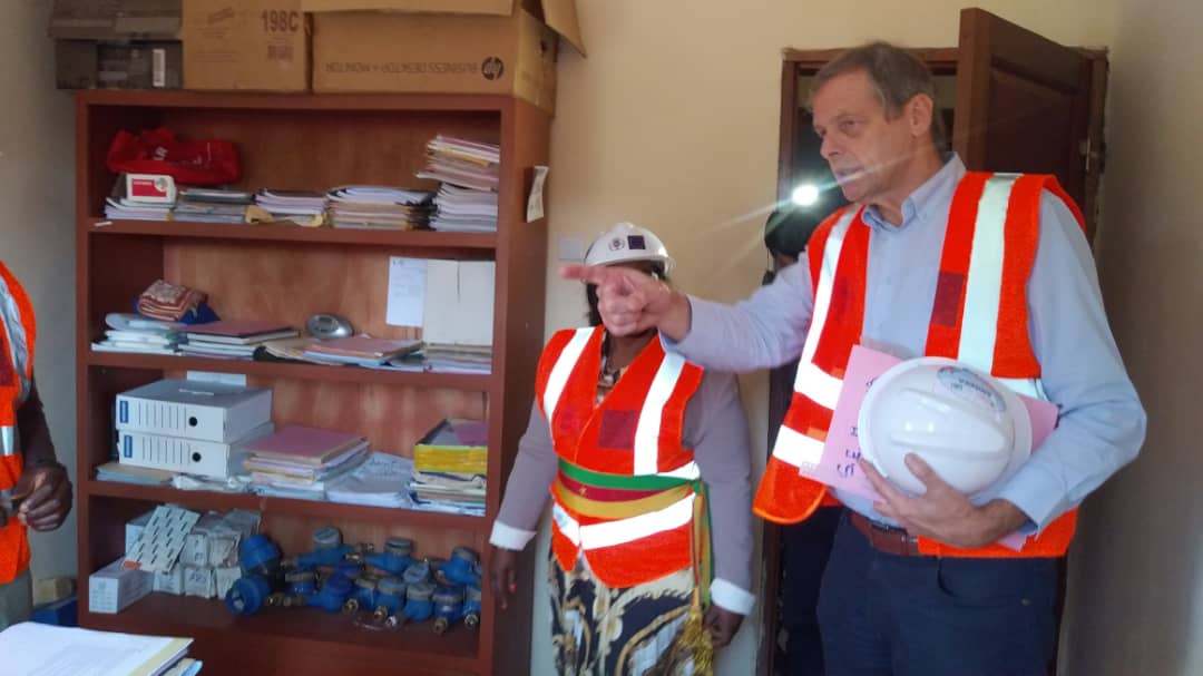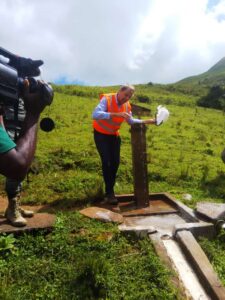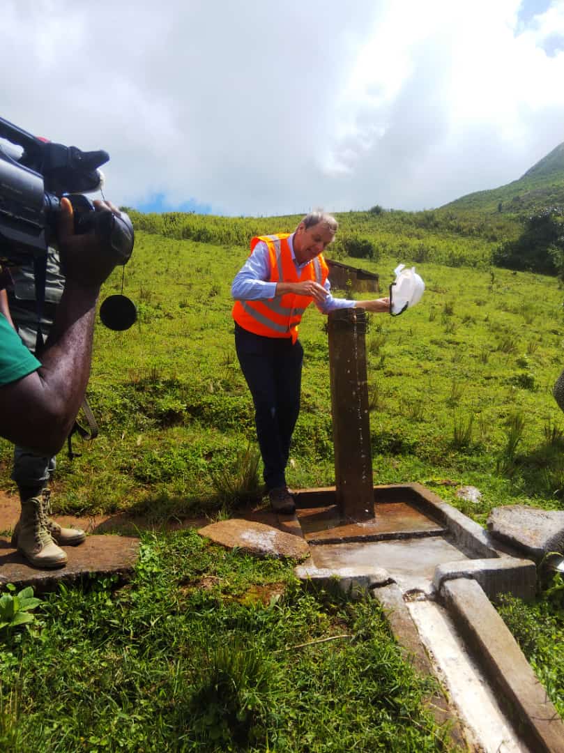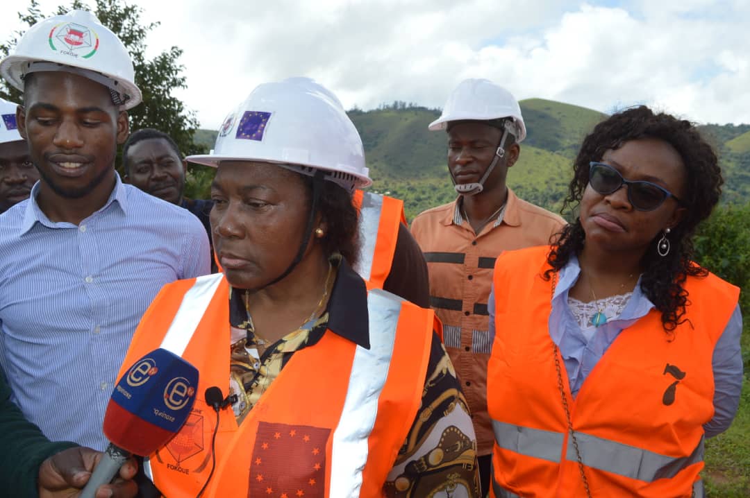 Le but de cette descente sur le terrain du Chef de la délégation de l’Union Européenne S.E Phillipe VAN DAMME consistait à palper du doigt le fonctionnement de l’adduction d’eau gravitaire cofinancée par l’Union Européenne et la Commune de Fokoué, suite à un appel à projet dans lequel ont competit plusieurs communes du Cameroun.