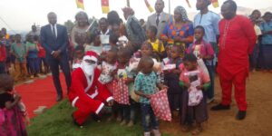 En prélude à la fête de Noël 2022, BALLA Augustin Maire de la commune d’arrondissement de Yaoundé 5 a foulé pour sa première fois le sol de l’arrondissement de Fokoué en vue de procurer de la joie aux enfants de cette municipalité. Ayant à sa suite une forte délégation constituée de ses adjoints et plusieurs chefs de services, l’élu local de Yaoundé 5 a mis à la disposition des enfants plus de 600 jouets constitués de jouets de distractions et éducatifs question de rehausser leur moral. Cette cérémonie de remise qui s’est étendue sur deux journées 15 et 16 Décembre 2022, a été une réussite totale car que se soit à Fontsa-Touala ou à l’esplanade de l’hôtel de ville de Fokoué ou encore à Fomopea, où les enfants ont été regroupés pour la circonstance, la joie était la même et le sourire total.
