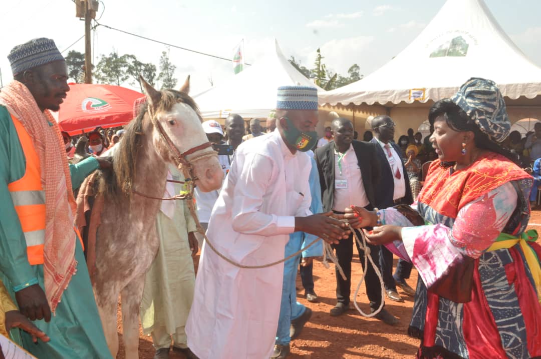 Femme sociale et sociable qui mène au quotidien une bataille sans pareille pour le vivre ensemble et l’égalité des tribus tant prônés par le Président de la République Paul Biya, Madame Demenou Tapamo Adrienne Paule a reçu un cadeau spécial de la communauté bororo de Fokoué en guise de remerciements pour son attachement sans faille à cette communauté. Le cheval blanc remis à Madame Demenou est plein de symboles, et consacre la victoire du vivre ensemble. C’est encore une preuve manifeste de la considération de toutes les couches sociales par le Chef de l’exécutif municipal qui est aujourd’hui récompensée.
