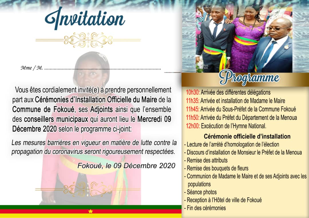 La cérémonie d’installation du Maire Demenou Tapamo Adrienne Paule, de ses adjoints et la remise des attributs aux conseillers municipaux de la Commune de Fokoué approche à grands pas.