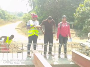 Pour le suivi de ce projet, on note la présence de l’ingénieur de la Délégation départementale des travaux publics en vue d’apprécier la qualité des travaux effectués, faire une validation d’étape avant le coulage de la Plateforme en respect des clauses contractuelles. Ceci en présence du service technique de la commune de Fokoué.