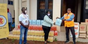 Sous l’impulsion de madame la mère des Maires de la Menoua qui s’est déjà réapproprieé la tenue du commandant en chef des opérations au front depuis le déclenchement de la crise sanitaire, l’entreprise brassicole a offert un don anticovid19 destiné aux personnes âgées de la municipalité. Ce soutien à cette catégorie de personnes à fragilité est constitué de :