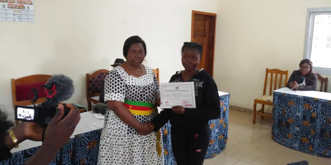 Au total 80 stagiaires qui ont reçu chacun une attestation de fin de formation et 10 laptops pour les dix meilleurs comme promis au début par Mafou’ou Ntchiet Menze Demenou Tapamo Adrienne infatigable Maire de Fokoué.